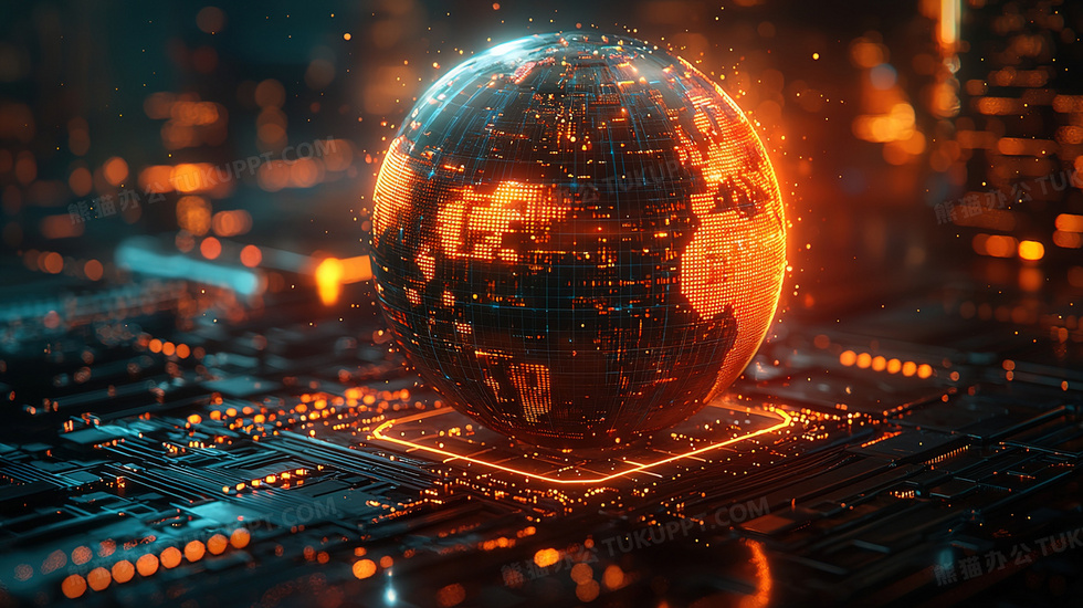 本作品内容为金融贸易发光芯片地球模型创意背景, 格式为 jpg, 大小3 MB, 图片尺寸为2912 x 1632, 作品中背景图片无需修改, 源文件无水印,可以直接使用, 欢迎使用熊猫办公。 如认为平台内容涉嫌侵权,可通过邮件:tousu@tukuppt.com提出书面通知,我们将及时处理。