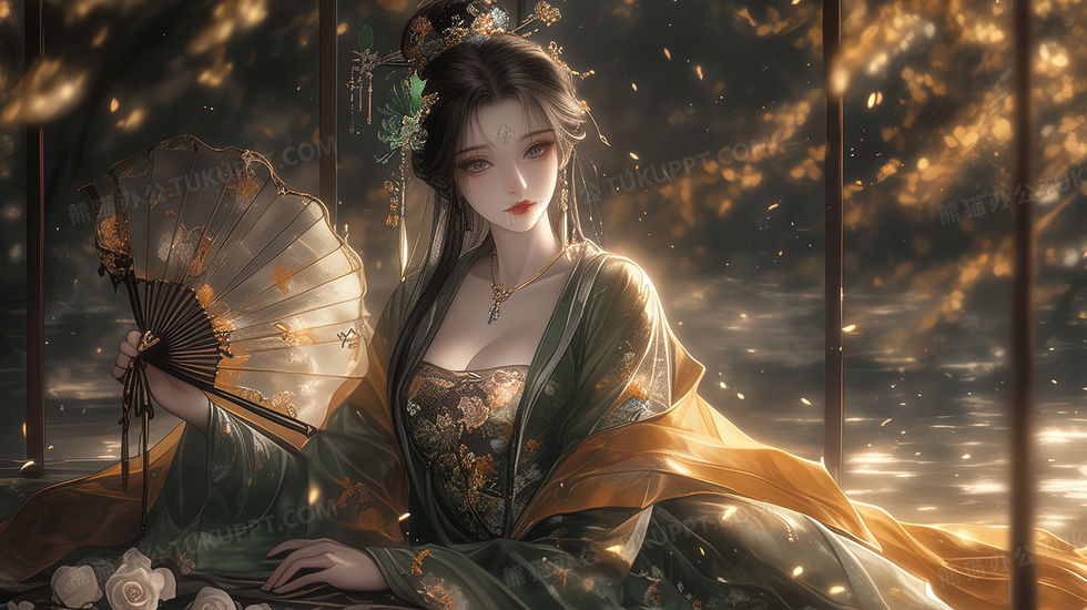 本作品内容为中国风拿扇子的古风汉服美女插画, 格式为 jpg, 大小3 MB, 图片尺寸为2912 x 1632, 源文件无水印, 欢迎使用熊猫办公。 如认为平台内容涉嫌侵权,可通过邮件:tousu@tukuppt.com提出书面通知,我们将及时处理。