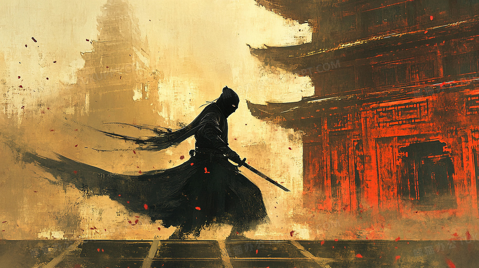 中国风武侠人物场景插画