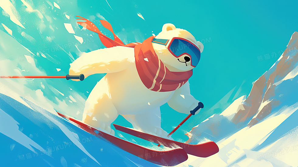 本作品内容为冬天动物小白熊滑雪冬季运动插画, 格式为 jpg, 大小3 MB, 图片尺寸为2912 x 1632, 源文件无水印, 欢迎使用熊猫办公。 如认为平台内容涉嫌侵权,可通过邮件:tousu@tukuppt.com提出书面通知,我们将及时处理。