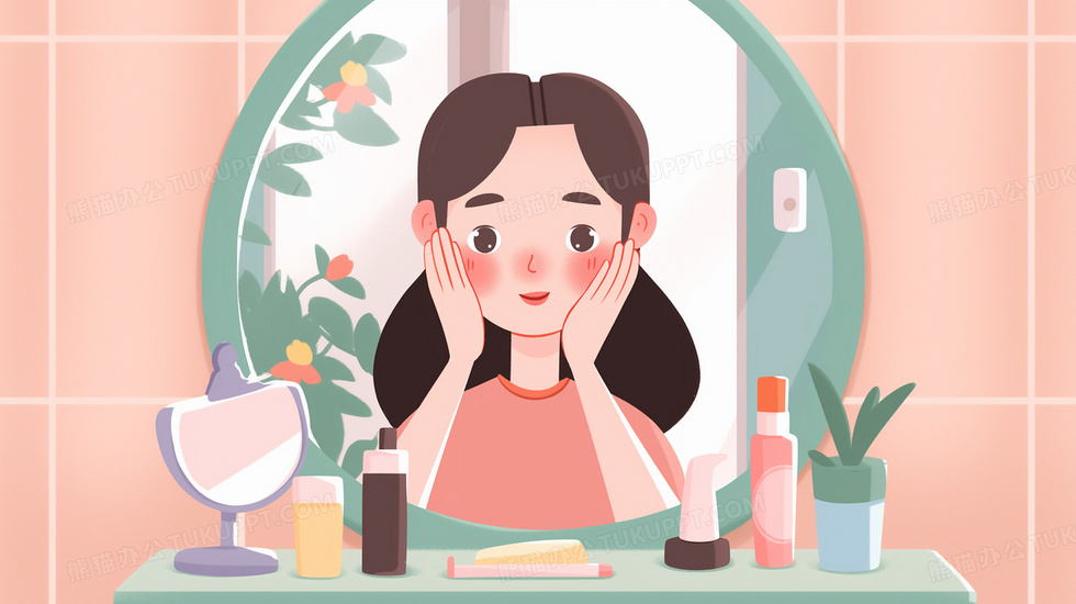 本作品内容为女孩坐在化妆镜前化妆插画, 格式为 jpg, 大小4 MB, 图片尺寸为2912 x 1632, 源文件无水印, 欢迎使用熊猫办公。 如认为平台内容涉嫌侵权,可通过邮件:tousu@tukuppt.com提出书面通知,我们将及时处理。