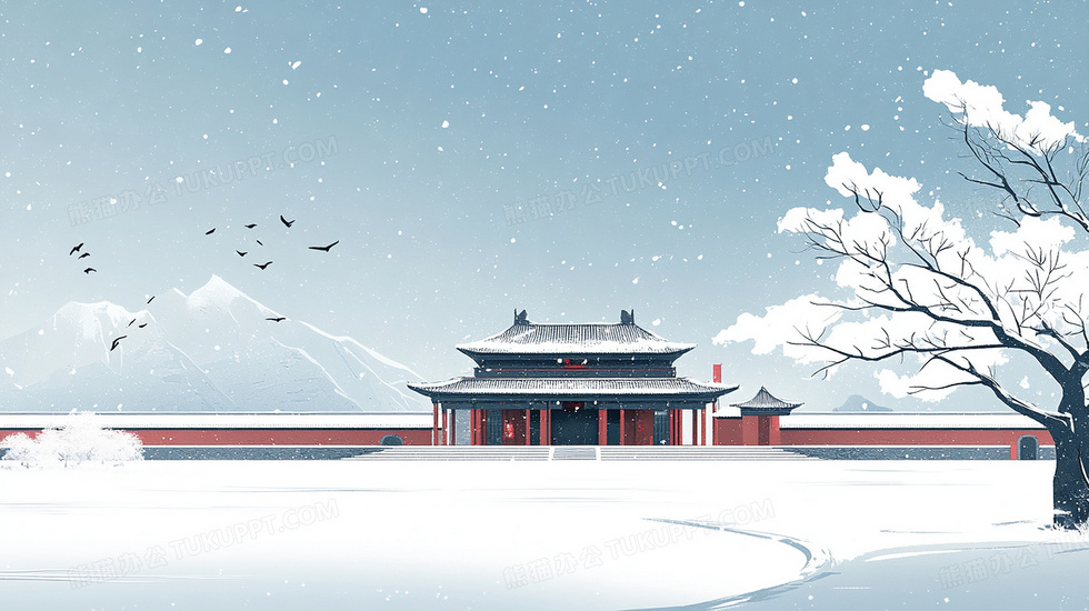 本作品内容为中国风房子冬天雪地景色唯美背景, 格式为 jpg, 大小3 MB, 图片尺寸为2912 x 1632, 作品中背景图片无需修改, 源文件无水印,可以直接使用, 欢迎使用熊猫办公。 如认为平台内容涉嫌侵权,可通过邮件:tousu@tukuppt.com提出书面通知,我们将及时处理。