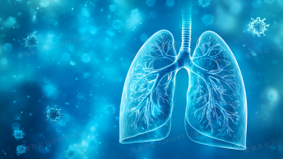 本作品内容为蓝色简约肺部感染背景, 格式为 jpg, 大小3 MB, 图片尺寸为2912 x 1632, 作品中背景图片无需修改, 源文件无水印,可以直接使用, 欢迎使用熊猫办公。 如认为平台内容涉嫌侵权,可通过邮件:tousu@tukuppt.com提出书面通知,我们将及时处理。