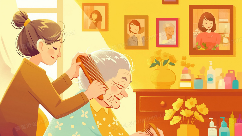 本作品内容为重阳帮老奶奶梳头的女孩插画, 格式为 jpg, 大小2 MB, 图片尺寸为2912 x 1632, 源文件无水印, 欢迎使用熊猫办公。 如认为平台内容涉嫌侵权,可通过邮件:tousu@tukuppt.com提出书面通知,我们将及时处理。