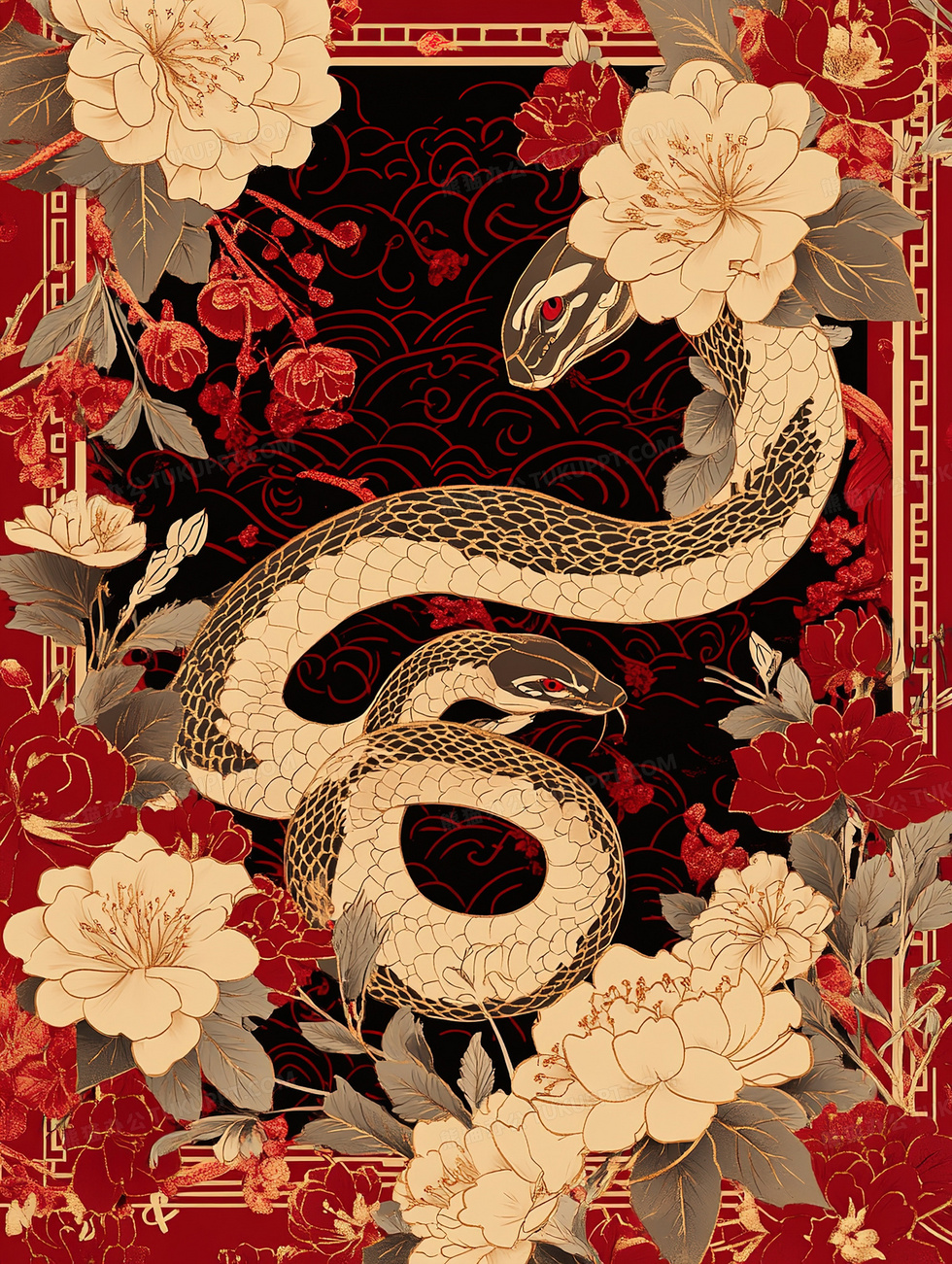 本作品内容为蛇年竖版植物花卉贺卡与蛇插画, 格式为 jpg, 大小5 MB, 图片尺寸为1856 x 2464, 源文件无水印, 欢迎使用熊猫办公。 如认为平台内容涉嫌侵权,可通过邮件:tousu@tukuppt.com提出书面通知,我们将及时处理。