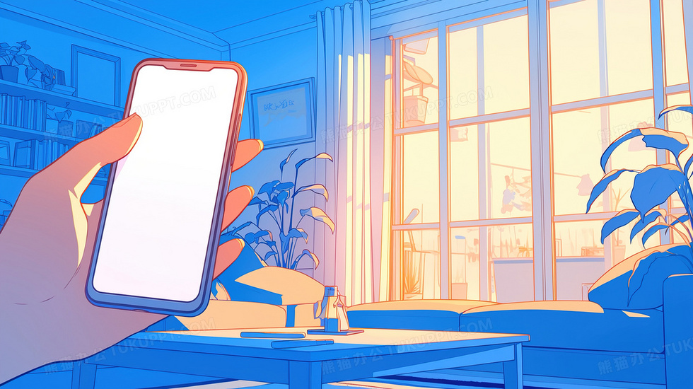本作品内容为窗边手机刷视频卡通插画, 格式为 jpg, 大小2 MB, 图片尺寸为2912 x 1632, 源文件无水印, 欢迎使用熊猫办公。 如认为平台内容涉嫌侵权,可通过邮件:tousu@tukuppt.com提出书面通知,我们将及时处理。