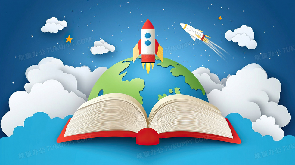 本作品内容为火箭教育文化书本读书日插画, 格式为 jpg, 大小3 MB, 图片尺寸为2912 x 1632, 源文件无水印, 欢迎使用熊猫办公。 如认为平台内容涉嫌侵权,可通过邮件:tousu@tukuppt.com提出书面通知,我们将及时处理。