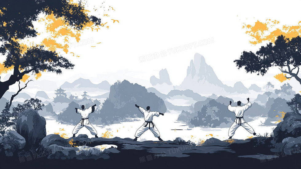 本作品内容为武术水墨中国风人物山水背景, 格式为 jpg, 大小3 MB, 图片尺寸为2912 x 1632, 作品中背景图片无需修改, 源文件无水印,可以直接使用, 欢迎使用熊猫办公。 如认为平台内容涉嫌侵权,可通过邮件:tousu@tukuppt.com提出书面通知,我们将及时处理。