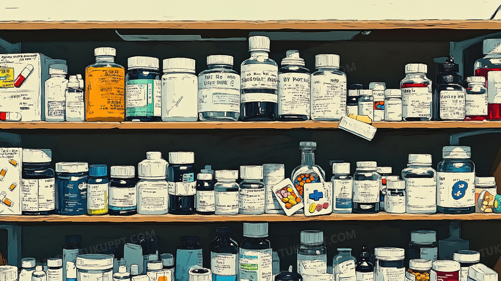 本作品内容为手绘风格药店货架上摆放着药品的插画, 格式为 jpg, 大小4 MB, 图片尺寸为2912 x 1632, 源文件无水印, 欢迎使用熊猫办公。 如认为平台内容涉嫌侵权,可通过邮件:tousu@tukuppt.com提出书面通知,我们将及时处理。
