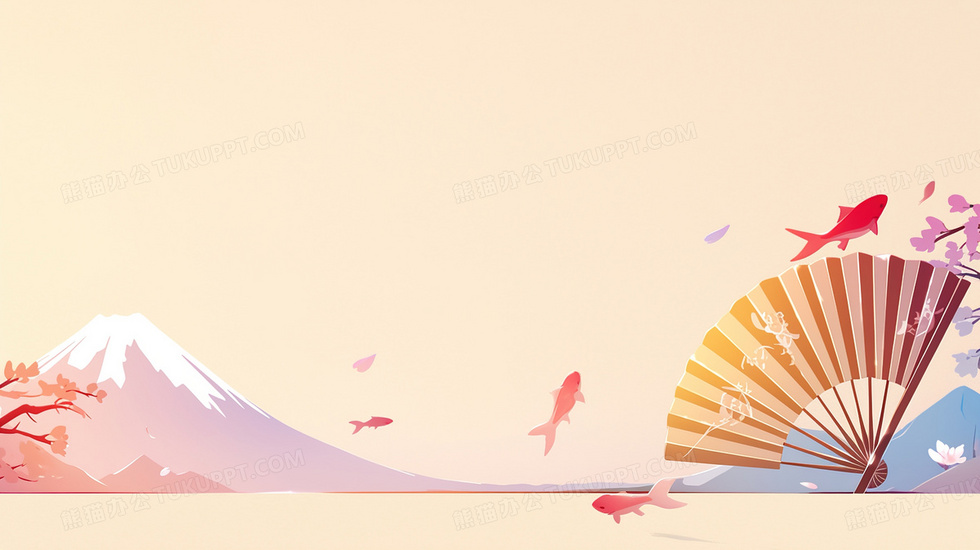 本作品内容为卡通日本富士山锦鲤创意背景, 格式为 jpg, 大小2 MB, 图片尺寸为2912 x 1632, 作品中背景图片无需修改, 源文件无水印,可以直接使用, 欢迎使用熊猫办公。 如认为平台内容涉嫌侵权,可通过邮件:tousu@tukuppt.com提出书面通知,我们将及时处理。