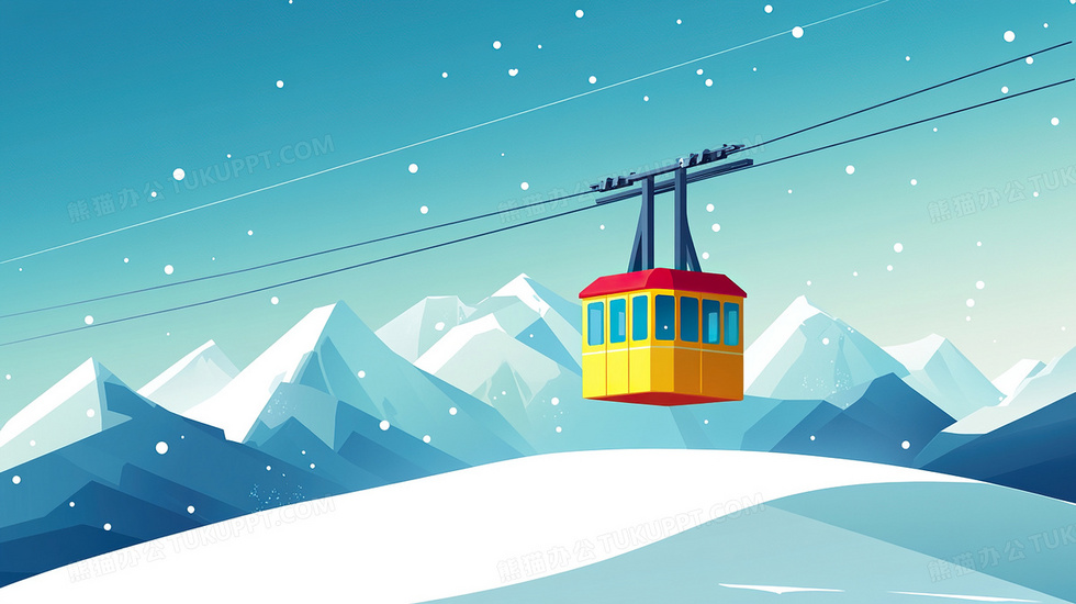 本作品内容为冬季缆车场景插画, 格式为 jpg, 大小3 MB, 图片尺寸为2912 x 1632, 源文件无水印, 欢迎使用熊猫办公。 如认为平台内容涉嫌侵权,可通过邮件:tousu@tukuppt.com提出书面通知,我们将及时处理。
