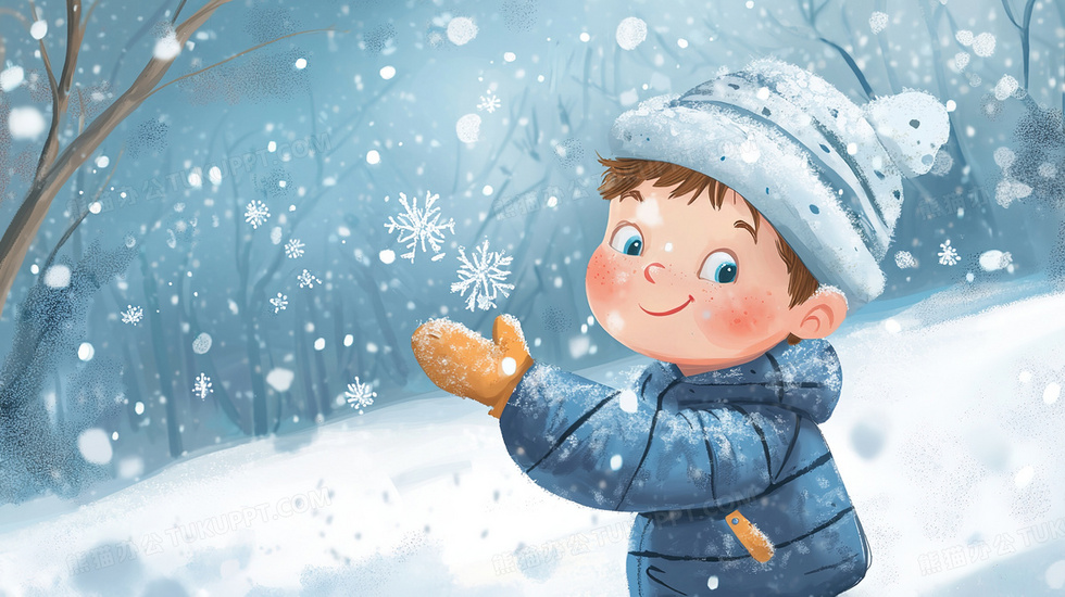 本作品内容为冬天雪地穿着厚重衣服接雪花观雪景的卡通人物插画, 格式为 jpg, 大小3 MB, 图片尺寸为2912 x 1632, 源文件无水印, 欢迎使用熊猫办公。 如认为平台内容涉嫌侵权,可通过邮件:tousu@tukuppt.com提出书面通知,我们将及时处理。