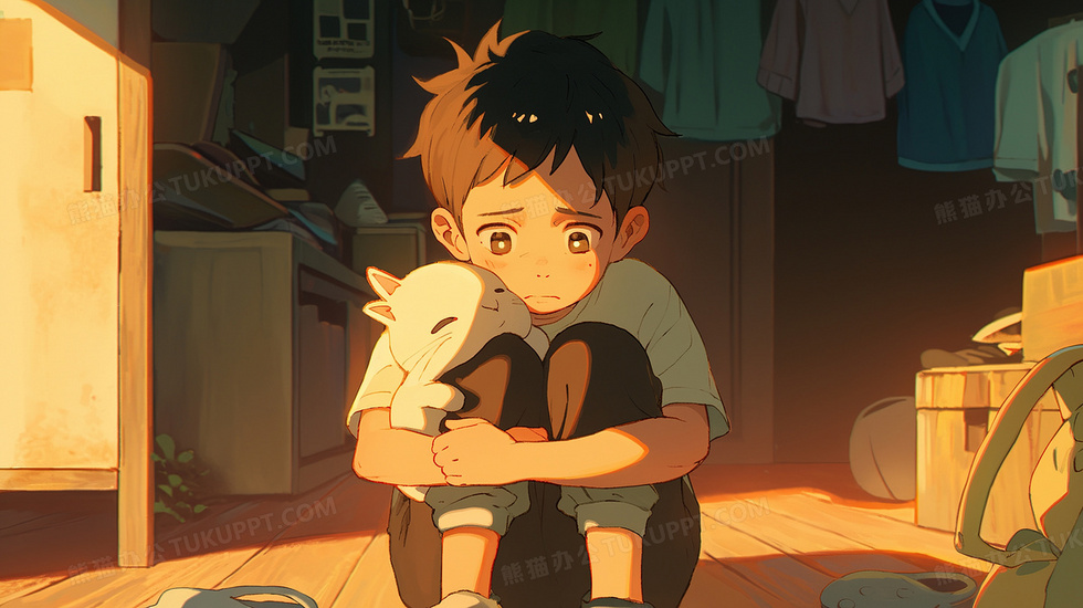 本作品内容为蹲在地上情绪沮丧的小男孩插画, 格式为 jpg, 大小3 MB, 图片尺寸为2912 x 1632, 源文件无水印, 欢迎使用熊猫办公。 如认为平台内容涉嫌侵权,可通过邮件:tousu@tukuppt.com提出书面通知,我们将及时处理。