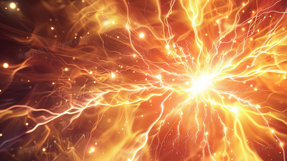 本作品内容为橙色闪耀闪电能量纹理背景, 格式为 jpg, 大小3 MB, 图片尺寸为2912 x 1632, 作品中背景图片无需修改, 源文件无水印,可以直接使用, 欢迎使用熊猫办公。 如认为平台内容涉嫌侵权,可通过邮件:tousu@tukuppt.com提出书面通知,我们将及时处理。