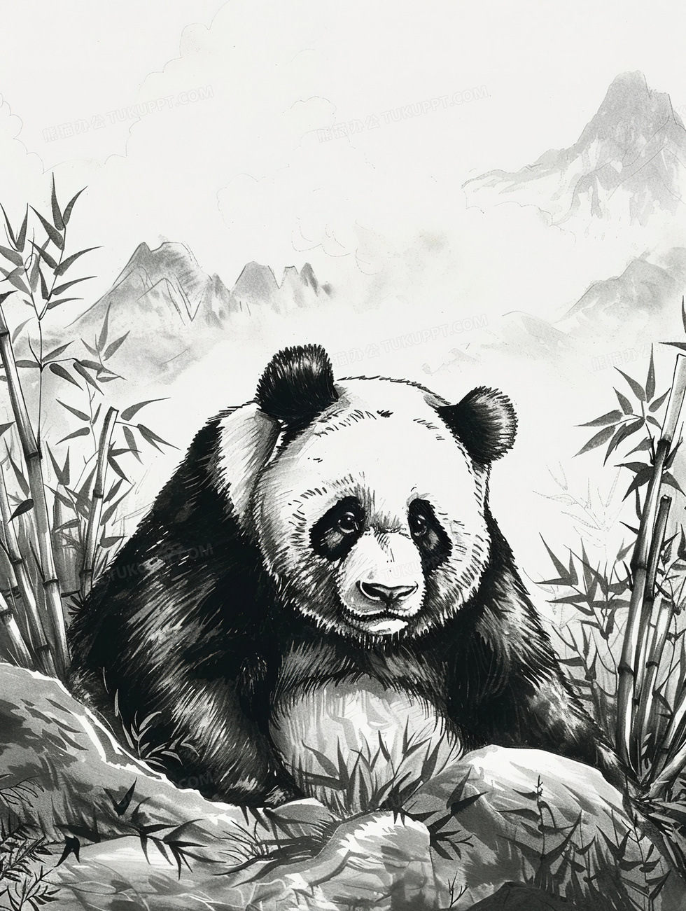 本作品内容为竹林里的熊猫黑白插画, 格式为 jpg, 大小4 MB, 图片尺寸为1856 x 2464, 源文件无水印, 欢迎使用熊猫办公。 如认为平台内容涉嫌侵权,可通过邮件:tousu@tukuppt.com提出书面通知,我们将及时处理。