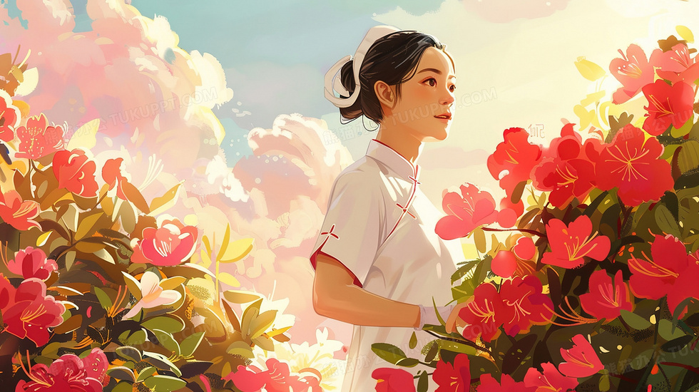本作品内容为站在花丛中的美女医护插画, 格式为 jpg, 大小3 MB, 图片尺寸为2912 x 1632, 源文件无水印, 欢迎使用熊猫办公。 如认为平台内容涉嫌侵权,可通过邮件:tousu@tukuppt.com提出书面通知,我们将及时处理。