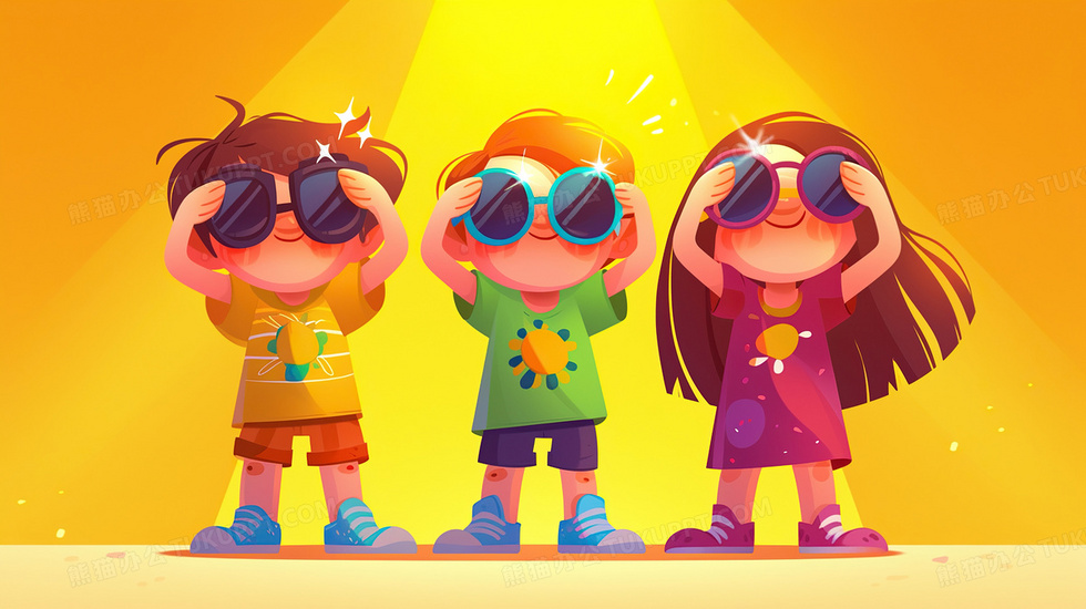 本作品内容为黄色带墨镜的三个小孩插画, 格式为 jpg, 大小2 MB, 图片尺寸为2912 x 1632, 源文件无水印, 欢迎使用熊猫办公。 如认为平台内容涉嫌侵权,可通过邮件:tousu@tukuppt.com提出书面通知,我们将及时处理。