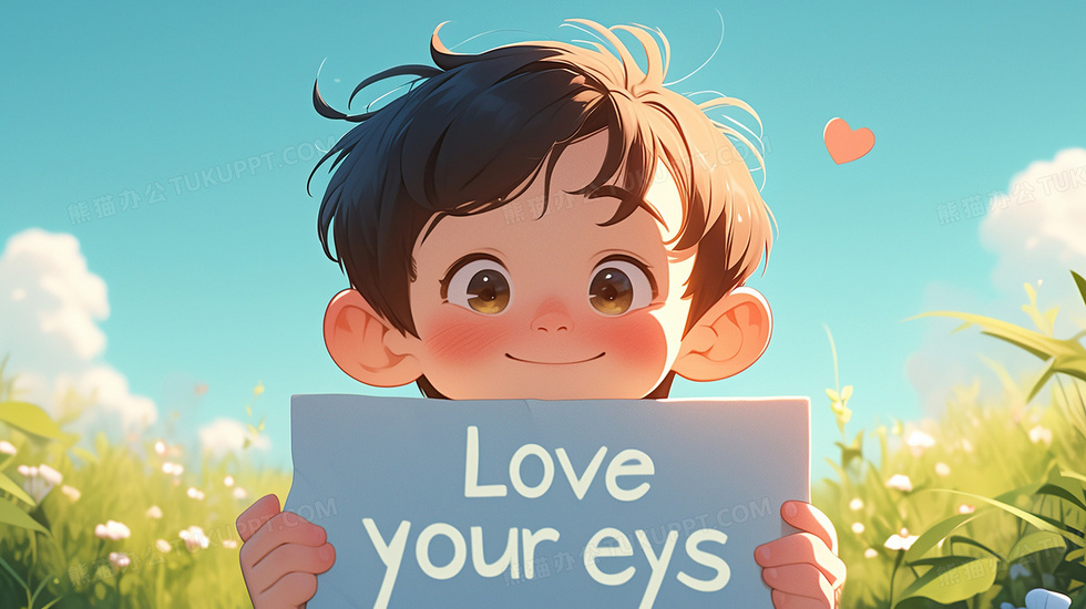 本作品内容为蓝天白云草地小男孩举牌爱眼日插画, 格式为 jpg, 大小3 MB, 图片尺寸为2912 x 1632, 源文件无水印, 欢迎使用熊猫办公。 如认为平台内容涉嫌侵权,可通过邮件:tousu@tukuppt.com提出书面通知,我们将及时处理。