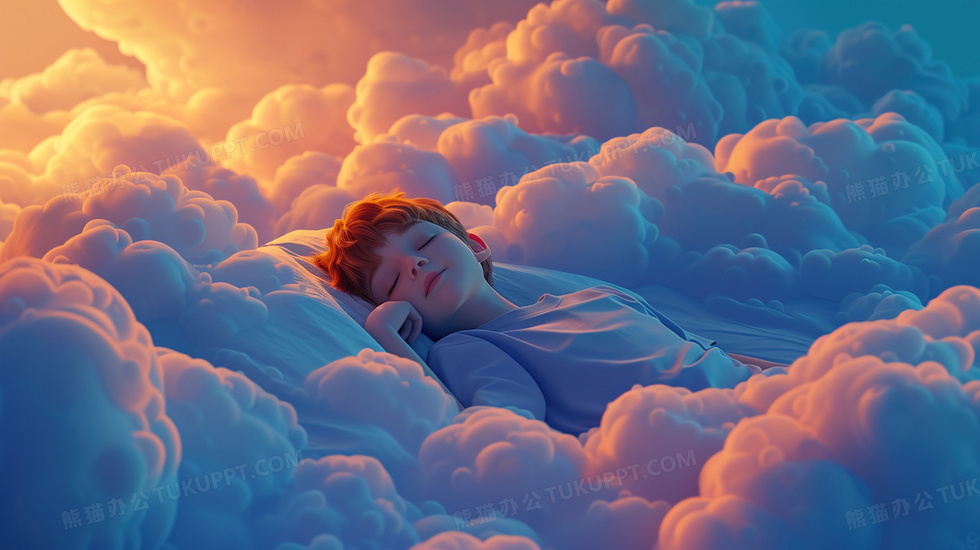 本作品内容为云朵上睡觉的一个小男孩插画, 格式为 jpg, 大小2 MB, 图片尺寸为2912 x 1632, 源文件无水印, 欢迎使用熊猫办公。 如认为平台内容涉嫌侵权,可通过邮件:tousu@tukuppt.com提出书面通知,我们将及时处理。