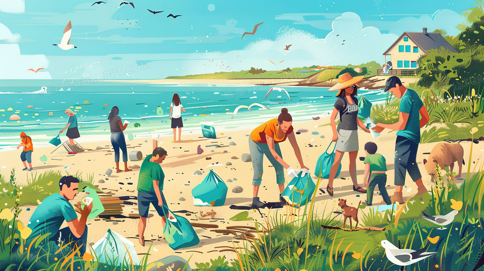 本作品内容为海滩上收拾垃圾的人们插画, 格式为 jpg, 大小4 MB, 图片尺寸为2912 x 1632, 源文件无水印, 欢迎使用熊猫办公。 如认为平台内容涉嫌侵权,可通过邮件:tousu@tukuppt.com提出书面通知,我们将及时处理。