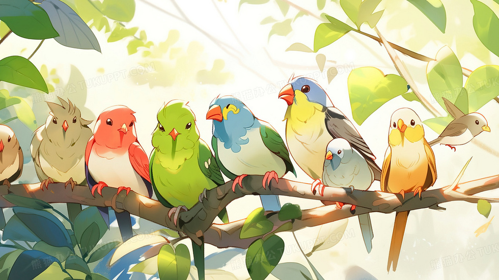 本作品内容为树林里的可爱彩色小鸟插画, 格式为 jpg, 大小3 MB, 图片尺寸为2912 x 1632, 源文件无水印, 欢迎使用熊猫办公。 如认为平台内容涉嫌侵权,可通过邮件:tousu@tukuppt.com提出书面通知,我们将及时处理。