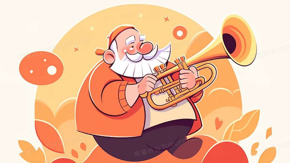 本作品内容为吹金色小号的老人插画, 格式为 jpg, 大小2 MB, 图片尺寸为2912 x 1632, 源文件无水印, 欢迎使用熊猫办公。 如认为平台内容涉嫌侵权,可通过邮件:tousu@tukuppt.com提出书面通知,我们将及时处理。