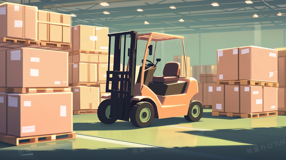 本作品内容为仓库里运输货物的叉车插画, 格式为 jpg, 大小2 MB, 图片尺寸为2912 x 1632, 源文件无水印, 欢迎使用熊猫办公。 如认为平台内容涉嫌侵权,可通过邮件:tousu@tukuppt.com提出书面通知,我们将及时处理。