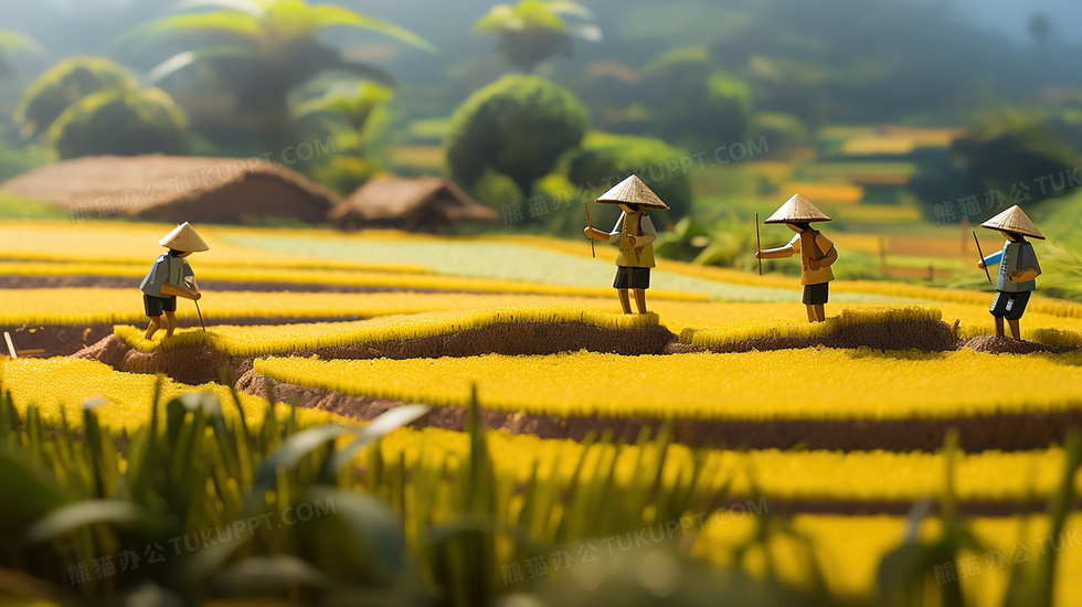 本作品内容为金色田野里耕种的农民们微缩模型图片, 格式为 jpg, 大小2 MB, 图片尺寸为2912 x 1632, 源文件无水印, 欢迎使用熊猫办公。 如认为平台内容涉嫌侵权,可通过邮件:tousu@tukuppt.com提出书面通知,我们将及时处理。