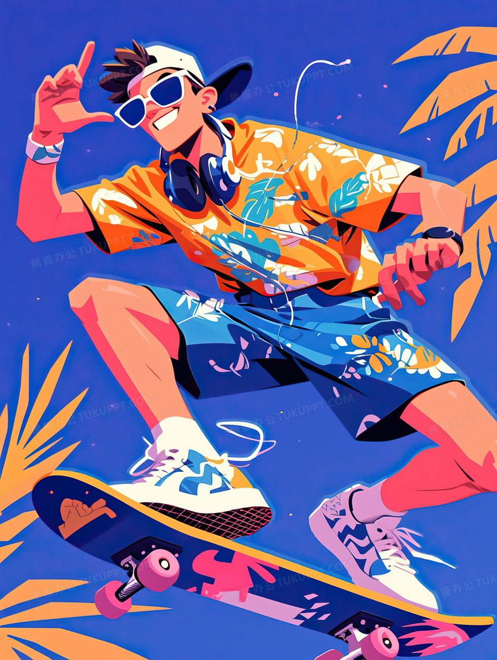 本作品内容为动感炫彩嘻哈风格街头滑板插画, 格式为 jpg, 大小3 MB, 图片尺寸为1856 x 2464, 源文件无水印, 欢迎使用熊猫办公。 如认为平台内容涉嫌侵权,可通过邮件:tousu@tukuppt.com提出书面通知,我们将及时处理。