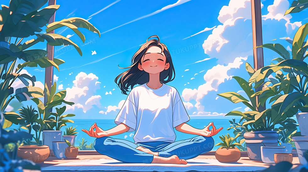 本作品内容为蓝色女孩在家做瑜伽插画, 格式为 jpg, 大小3 MB, 图片尺寸为2912 x 1632, 源文件无水印, 欢迎使用熊猫办公。 如认为平台内容涉嫌侵权,可通过邮件:tousu@tukuppt.com提出书面通知,我们将及时处理。
