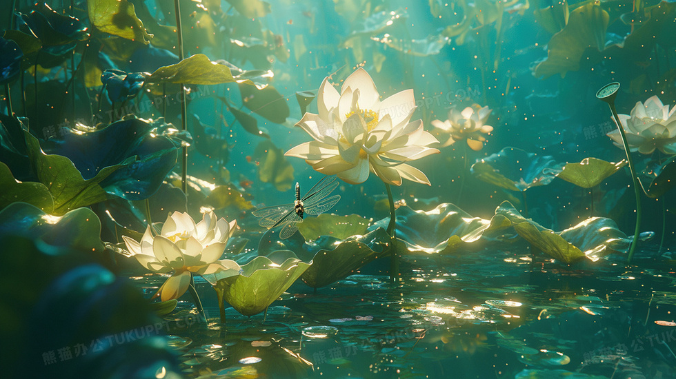 本作品内容为夏日池塘荷花蜻蜓插画, 格式为 jpg, 大小4 MB, 图片尺寸为2912 x 1632, 源文件无水印, 欢迎使用熊猫办公。 如认为平台内容涉嫌侵权,可通过邮件:tousu@tukuppt.com提出书面通知,我们将及时处理。