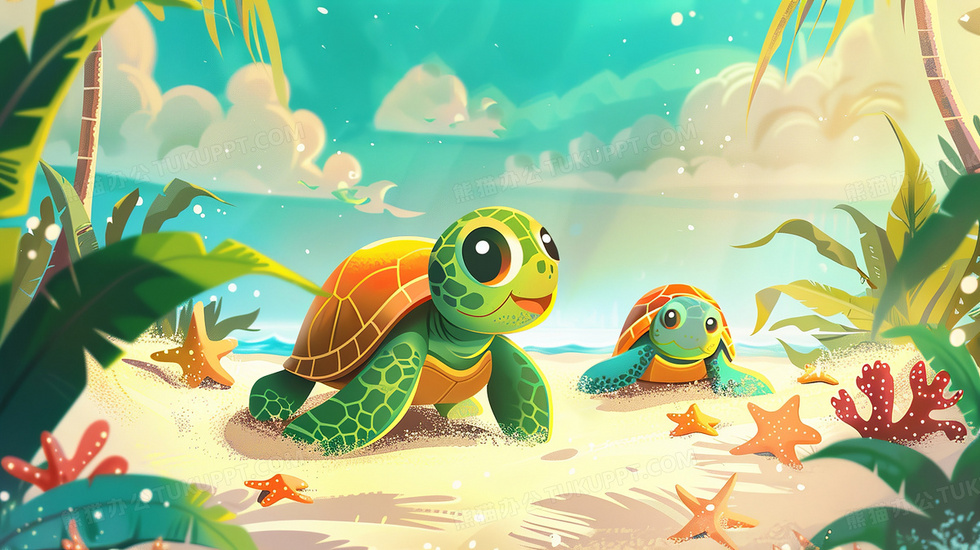 本作品内容为海边沙滩上海龟在玩乐插画, 格式为 jpg, 大小3 MB, 图片尺寸为2912 x 1632, 源文件无水印, 欢迎使用熊猫办公。 如认为平台内容涉嫌侵权,可通过邮件:tousu@tukuppt.com提出书面通知,我们将及时处理。