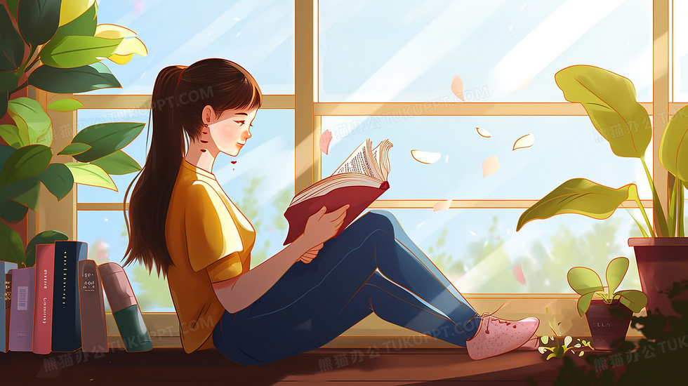 本作品内容为坐在窗台上看书的女生插画, 格式为 jpg, 大小2 MB, 图片尺寸为2912 x 1632, 源文件无水印, 欢迎使用熊猫办公。 如认为平台内容涉嫌侵权,可通过邮件:tousu@tukuppt.com提出书面通知,我们将及时处理。