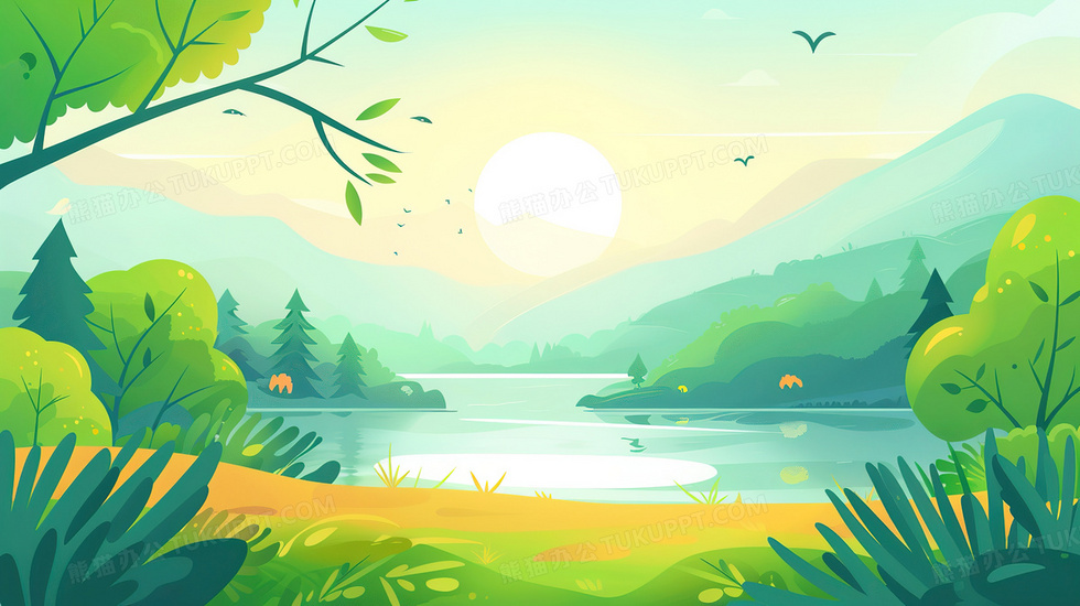 本作品内容为春天的森林公园一角风景插画, 格式为 jpg, 大小3 MB, 图片尺寸为2912 x 1632, 源文件无水印, 欢迎使用熊猫办公。 如认为平台内容涉嫌侵权,可通过邮件:tousu@tukuppt.com提出书面通知,我们将及时处理。