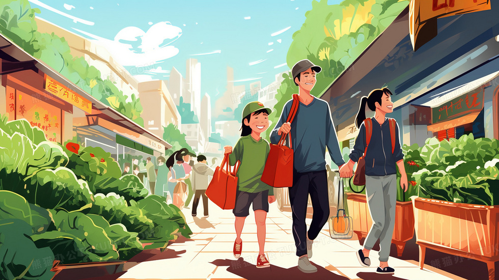 本作品内容为一家人在超市里购买蔬菜温馨插画, 格式为 jpg, 大小3 MB, 图片尺寸为2912 x 1632, 源文件无水印, 欢迎使用熊猫办公。 如认为平台内容涉嫌侵权,可通过邮件:tousu@tukuppt.com提出书面通知,我们将及时处理。