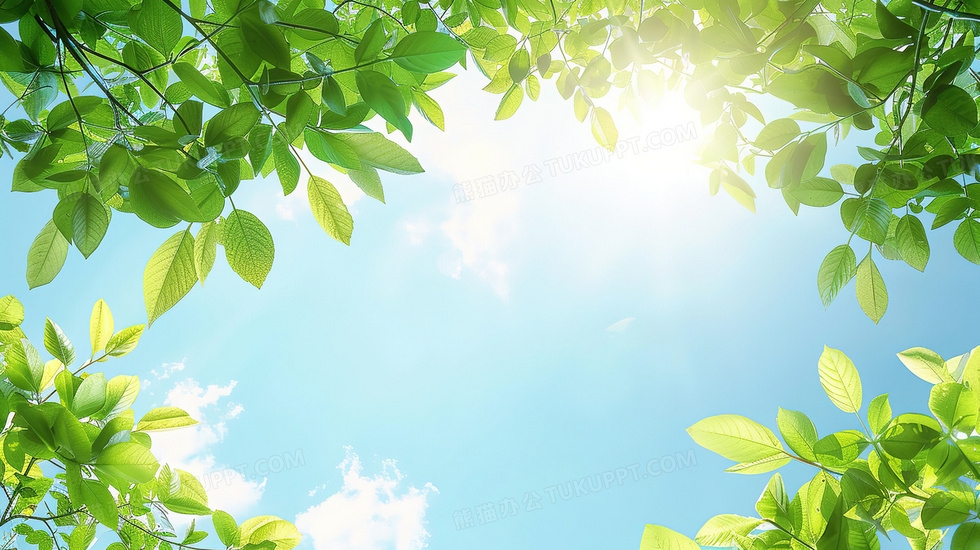 本作品内容为绿色树叶蓝色天空小清新背景图, 格式为 jpg, 大小4 MB, 图片尺寸为2912 x 1632, 作品中背景图片无需修改, 源文件无水印,可以直接使用, 欢迎使用熊猫办公。 如认为平台内容涉嫌侵权,可通过邮件:tousu@tukuppt.com提出书面通知,我们将及时处理。