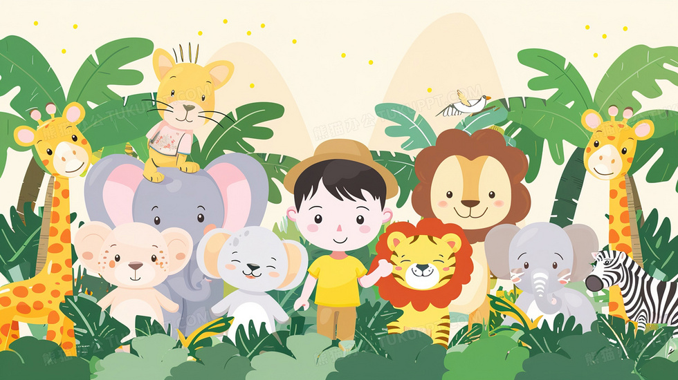 本作品内容为节假日动物园游玩的儿童插画, 格式为 jpg, 大小2 MB, 图片尺寸为2912 x 1632, 源文件无水印, 欢迎使用熊猫办公。 如认为平台内容涉嫌侵权,可通过邮件:tousu@tukuppt.com提出书面通知,我们将及时处理。