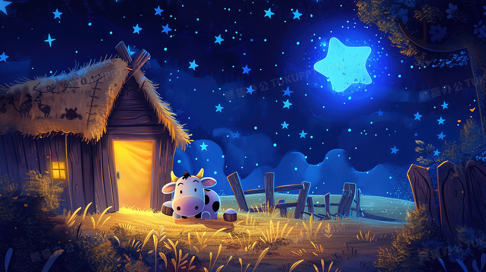 本作品内容为夜晚唯美星空下的奶牛插画, 格式为 jpg, 大小3 MB, 图片尺寸为2912 x 1632, 源文件无水印, 欢迎使用熊猫办公。 如认为平台内容涉嫌侵权,可通过邮件:tousu@tukuppt.com提出书面通知,我们将及时处理。