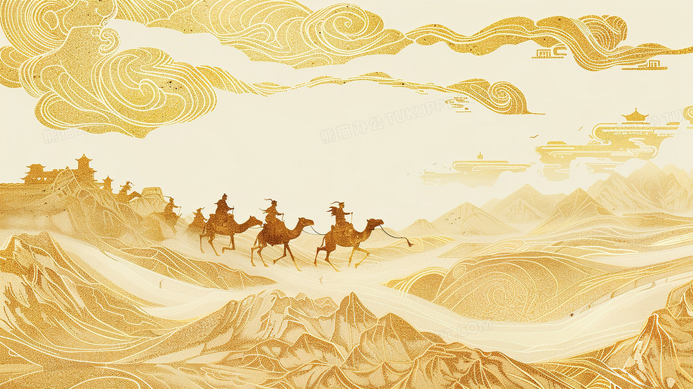 本作品内容为黄色沙漠骆驼丝绸之路插画, 格式为 jpg, 大小4 MB, 图片尺寸为2912 x 1632, 源文件无水印, 欢迎使用熊猫办公。 如认为平台内容涉嫌侵权,可通过邮件:tousu@tukuppt.com提出书面通知,我们将及时处理。