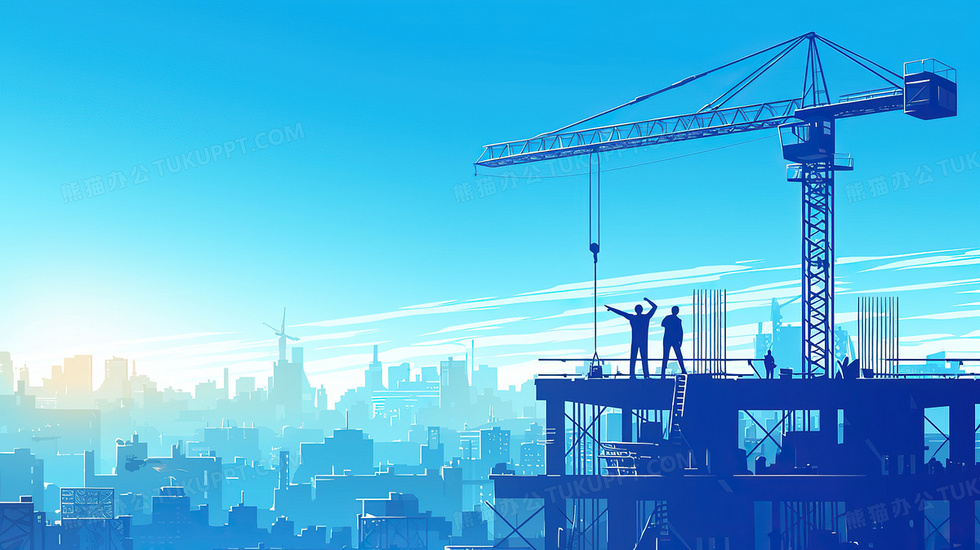 本作品内容为蓝色剪影工地安全生产月背景, 格式为 jpg, 大小3 MB, 图片尺寸为2912 x 1632, 作品中背景图片无需修改, 源文件无水印,可以直接使用, 欢迎使用熊猫办公。 如认为平台内容涉嫌侵权,可通过邮件:tousu@tukuppt.com提出书面通知,我们将及时处理。