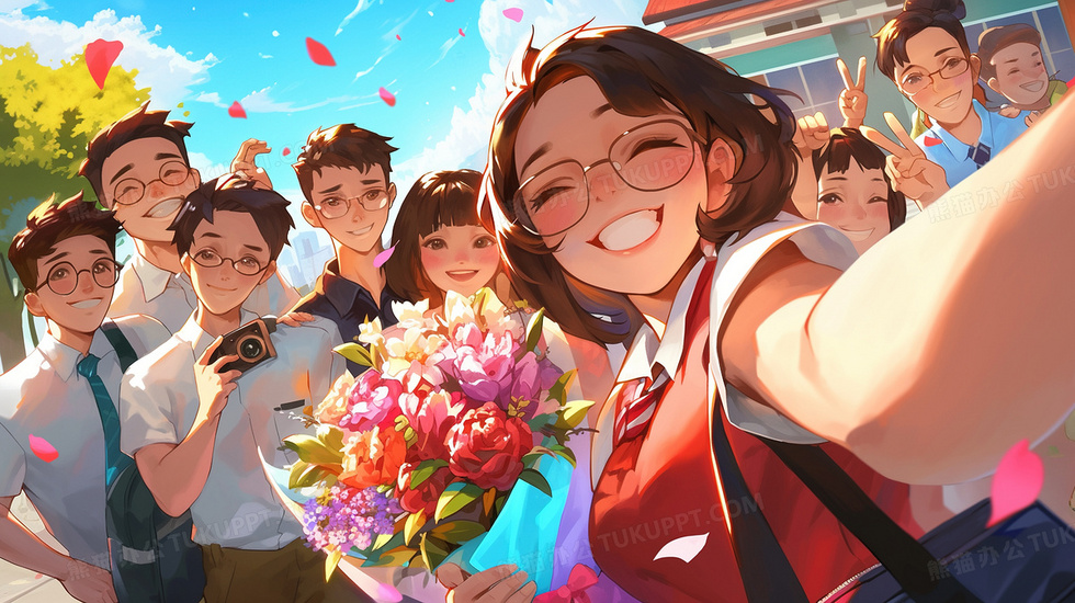 本作品内容为毕业女孩抱着鲜花拍照合影插画, 格式为 jpg, 大小3 MB, 图片尺寸为2912 x 1632, 源文件无水印, 欢迎使用熊猫办公。 如认为平台内容涉嫌侵权,可通过邮件:tousu@tukuppt.com提出书面通知,我们将及时处理。