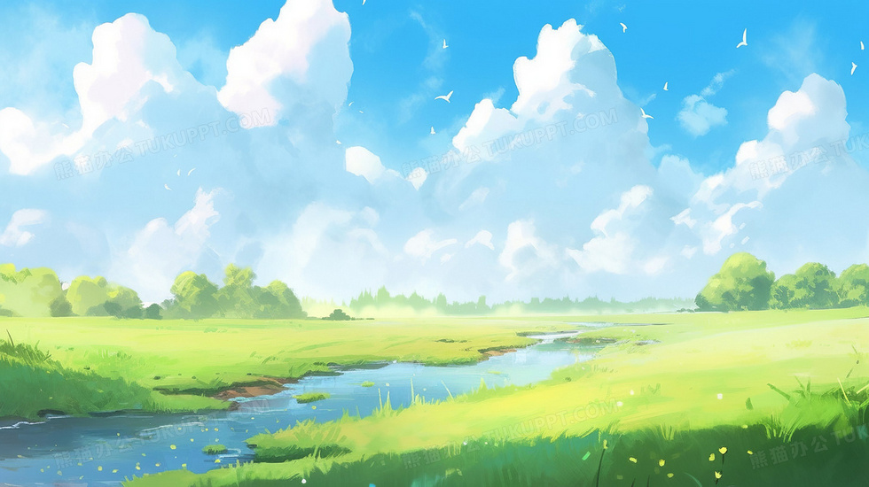 本作品内容为清新唯美蓝天白云青草地和小溪水, 格式为 jpg, 大小1 MB, 图片尺寸为2912 x 1632, 源文件无水印, 欢迎使用熊猫办公。 如认为平台内容涉嫌侵权,可通过邮件:tousu@tukuppt.com提出书面通知,我们将及时处理。