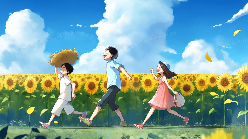 本作品内容为孩子们在美丽的向日葵花海前奔跑, 格式为 jpg, 大小3 MB, 图片尺寸为2848 x 1600, 源文件无水印, 欢迎使用熊猫办公。 如认为平台内容涉嫌侵权,可通过邮件:tousu@tukuppt.com提出书面通知,我们将及时处理。