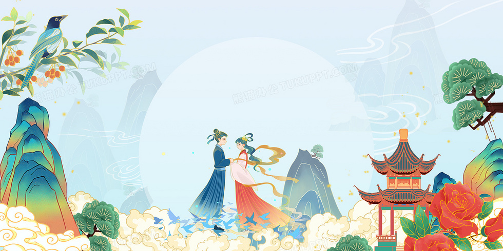 本作品内容为国潮风浪漫七夕创意合成背景, 格式为 psd, 大小52 MB, 图片尺寸为4724 x 2362, 作品中背景图片无需修改, 源文件无水印,可以直接使用, 欢迎使用熊猫办公。 如认为平台内容涉嫌侵权,可通过邮件:tousu@tukuppt.com提出书面通知,我们将及时处理。