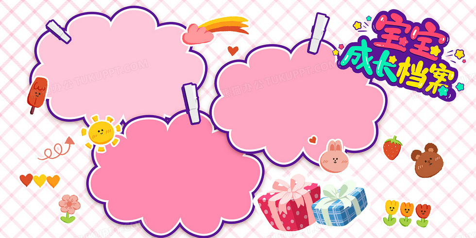 本作品内容为卡通可爱成长记录相框边框背景, 格式为 psd, 大小10 MB, 图片尺寸为4724 x 2362, 作品中背景图片无需修改, 源文件无水印,可以直接使用, 欢迎使用熊猫办公。 如认为平台内容涉嫌侵权,可通过邮件:tousu@tukuppt.com提出书面通知,我们将及时处理。
