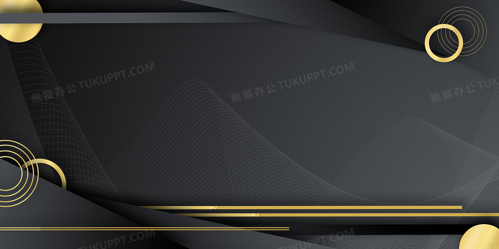 本作品内容为商务简约黑金合成背景, 格式为 psd, 大小32 MB, 图片尺寸为4724 x 2362, 作品中背景图片无需修改, 源文件无水印,可以直接使用, 欢迎使用熊猫办公。 如认为平台内容涉嫌侵权,可通过邮件:tousu@tukuppt.com提出书面通知,我们将及时处理。