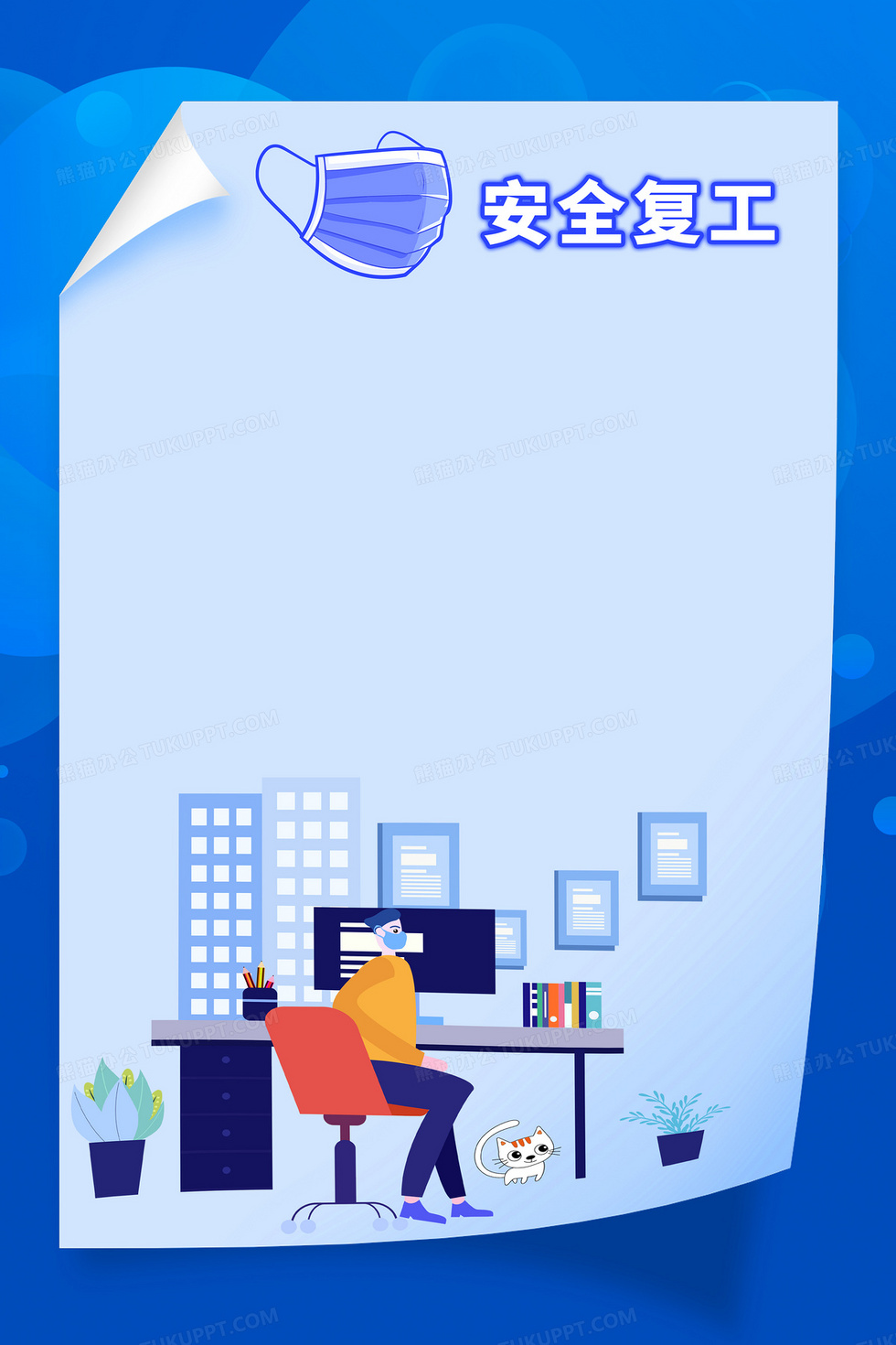 本作品内容为蓝色扁平安全复工边框背景, 格式为 psd, 大小17 MB, 图片尺寸为3543 x 5315, 作品中背景图片无需修改, 源文件无水印,可以直接使用, 欢迎使用熊猫办公。 如认为平台内容涉嫌侵权,可通过邮件:tousu@tukuppt.com提出书面通知,我们将及时处理。