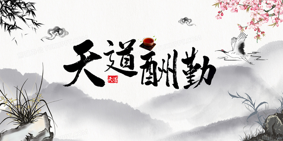 本作品内容为中国风中国风天道酬勤励志背景, 格式为 psd, 大小110 MB, 图片尺寸为4724 x 2362, 作品中背景图片无需修改, 源文件无水印,可以直接使用, 欢迎使用熊猫办公。 如认为平台内容涉嫌侵权,可通过邮件:tousu@tukuppt.com提出书面通知,我们将及时处理。