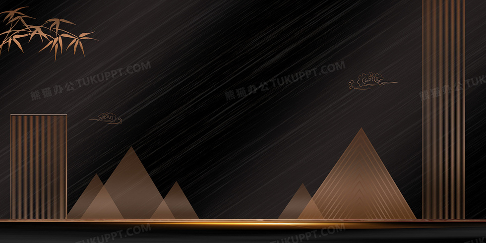 本作品内容为黑金新中式中国风商务企业背景, 格式为 psd, 大小55 MB, 图片尺寸为4724 x 2362, 作品中背景图片无需修改, 源文件无水印,可以直接使用, 欢迎使用熊猫办公。 如认为平台内容涉嫌侵权,可通过邮件:tousu@tukuppt.com提出书面通知,我们将及时处理。