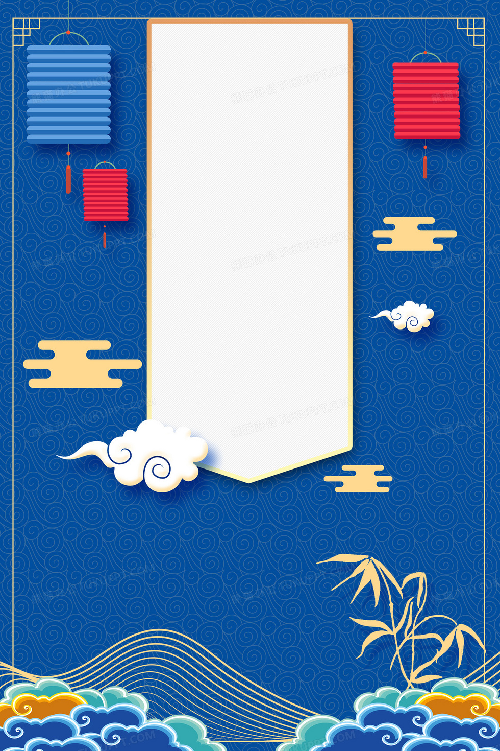 本作品内容为新中式宝蓝中国风大气灯笼祥云背景, 格式为 psd, 大小54 MB, 图片尺寸为3543 x 5315, 作品中背景图片无需修改, 源文件无水印,可以直接使用, 欢迎使用熊猫办公。 如认为平台内容涉嫌侵权,可通过邮件:tousu@tukuppt.com提出书面通知,我们将及时处理。